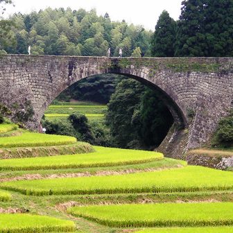 通潤橋のたもとに拡がる棚田で橋上から一望できます。通潤橋中央部から観光用の放水風景と棚田のコラボレーションは見事です。通潤橋は熊本県山都町にある農…