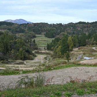 佐渡島の北側、海岸段丘の上に広がる“おひょう”と“おつう”が守る棚田です。日本海からは四季を通じ、海のミネラル分を豊富に含んだ風を受け、背後の大佐渡山…