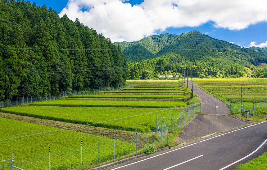 ↑↑↑ 航空写真に切り替えると棚田の全景を見れますよ!| 公共交通 | JR草津線・甲賀駅前からタクシー利用で25分 |
