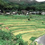 温泉で有名な別府市の西側山裾に位置し、東側は市街地越しに別府湾を見下ろせる風光明媚な棚田です。内竈の棚田とも呼ばれ市民の憩いのスポットとして親しまれています。棚田は保存会を中心に水路の清掃や補修、農道等の草刈り、野焼きなどの共同作業を年間を通じ行っています。扇状地形の上部に位置するこの棚田の保全活動はとても重要で、下部に広がる市街地への洪水防止、土砂流出防止、水源涵養機能として大きな役割を果たしています。地元の園児や小学校生を対象にした田植え・稲刈り体験会も実施しており食べ物の大切さを考える貴重な体験の場を提供しています。