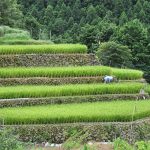 令和4年に農水省は棚田支援政策の一環として「つなぐ棚田遺産」を選定しました。ここ二見平野棚田も選定されました。江戸時代から代々の農家によりつなぎ受け継がれており、石積みの棚田景観は見事です。人の背丈を超えるような畦は文化的価値も高く積極的な維持・保全により現在に至っています。八代市は眼鏡橋に象徴されるように豊富な石材による石造物が多く棚田の畦も例外ではありません。この棚田で生産されるお米は山間部の寒暖差とミネラル豊富な山の湧水のおかげで美味しさは格別です。