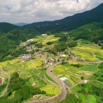 長門市は、山口県の西北部に位置し、東は萩市、南は下関市・美弥市に接し、北は北長門海岸国定公園に指定された日本海に面した風光明媚な市です。棚田は、主傾斜1/4.2という超傾斜地に加え、棚田の先には江ノ島が浮かぶ油谷湾が広がっている空と海のコントラストが映える棚田です。古来から残るその景観は、「日本の原風景」そのものです。この景観を守るため、本郷集落では、「草刈りはスポーツだ」との発想から「草刈りサミット」を呼びかけ、「棚田の草刈りは重労働でムカつく」状況をポジティブに打開する策として、草刈り作業にスポーツの要素を取り入れ、草刈り作業の技術向上と地域の景観維持に寄与することを目的に取組んでいます。また、当地域は県下でも有数の畜産業が盛んな地域であることから、耕作放棄地であった農用地を有効活用した放牧による黒毛和種の繁殖母牛を飼育する取り組みも行われています。
