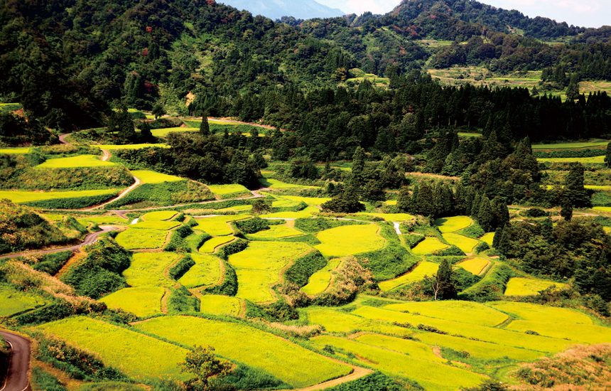 新潟県西部の頚城<くびき>地方は日本一の棚田地帯。なかでも十日町市は棚田の面積が5000ha近くあり、上越市と並ぶ棚田の多い市町村です。十日町市松代<まつだい>地域にあるこの棚田は、以前は峠の棚田と呼ばれていましたが、平成の合併により他地域との混同を避けるため星峠と呼ばれるようになりました。