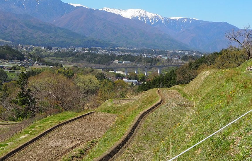 伊那谷と天竜川、さらには南アルプス中央アルプスを望める風光明媚な棚田です。天竜川が作り出した河岸段丘上の棚田で雄大な自然のもとお米つくり、酒米づくりなど永続的な棚田保全と地域の活性化に取り組んでいます。飯沼の棚田と特産品のブランド化を図るべく村内で日本酒醸造に取り組む酒造会社と協働により酒米“美山錦”を原料にした「今錦おたまじゃくし」を販売しブランド化にも努めています。収穫できる酒米も多くないことから希少価値が高まっています。「日本で最も美しい村」連合に加盟する中川村では、今後もサポーター企業の支援を含め荒廃農地とならないよう取り組みを進めています。