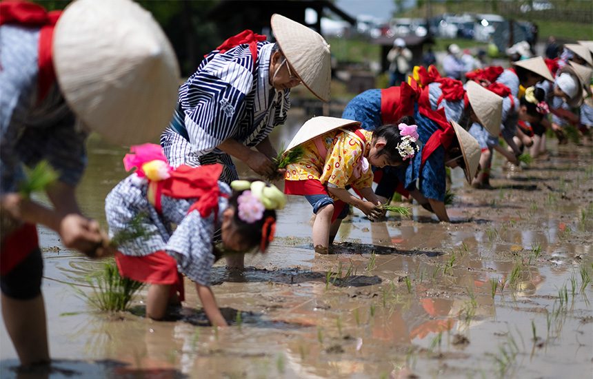 〇作業体験:田植え(5~6月)、田の草取り※任意参加(6~7月)、稲刈り(9月)、脱穀※任意参加(10月)、収穫祭※任意参加(11月)