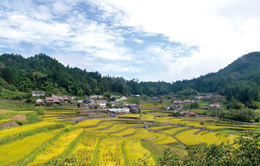 集落から数㎞離れた山中から水路を引き、その水を利用して米作りを行っています。世界自然遺産の屋久島の縄文水や白神山地の湧水に匹敵する水質で、石垣の輻射熱や気温の日較 差などの良好な環境が品質のよい米を産出しています。4 ~5 月の田植えの時期、 9 〜 10 月の稲刈りの時期は、棚田の景色を見るために多くの人が訪れ、2015年にアメリカのニュース専門放送局 CNNの「 Japan’s 31 most beautiful places (日本の最も美しい場所31 選)」に選出され、近年は海外からの観光客も訪れています。