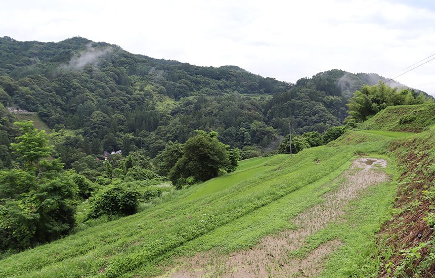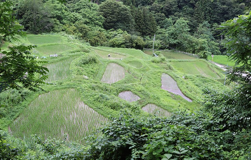 大町市街から北アルプス連山と反対側の県道55号経由で山を越えた八坂地区の山中にあります。ここは八坂村でしたが現在は合併し大町市八坂となっています。棚田の名称「重太郎の棚田」は、この地区の開田で功績のあった先人の名前からとったものです。重太郎の棚田は、①梨の木地区 ②生婦平地区 ③馬落し地区 ④中村地区と4ヶ所の棚田に分かれており急傾斜地をうまく利用した棚田で「日本の棚田百選」に選定されている美しい棚田です。棚田地域振興を目的にした「つなぐ棚田遺産」の選定に当たっては幾つかの地区の棚田をまとめ棚田群としてのネーミングが数多く見られますが、百選の棚田選定では珍しいケースの名称です。重太郎棚田の4地区について、2023年初夏の風景写真を順次の紹介しています。