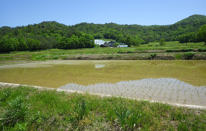 高島町にある海上の棚田は、県南部、奥羽山脈の東麓にある上和田集落に広がっています。集落の両側になだらかな棚田が広がっており、時間の流れがゆるやかに感じられる特徴的景観です。この地は自然に囲まれ、早くから有機農業に取組んでいます。農業従事者の高齢化や後継者不足により、耕作放棄地があります。