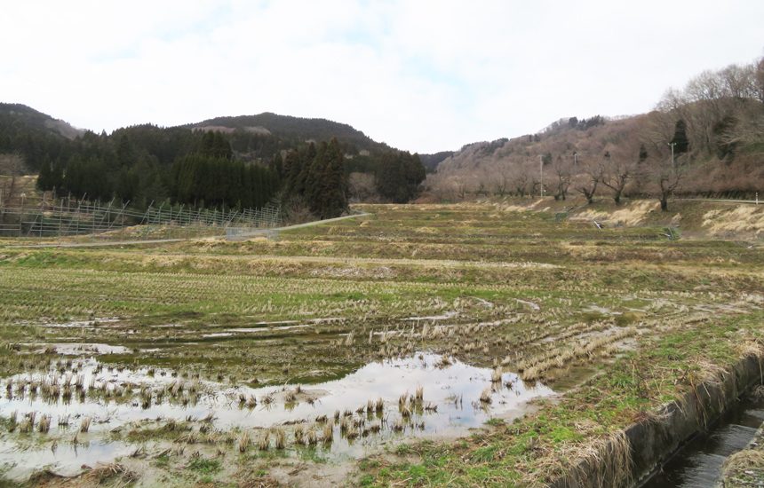 この地域では、多くの住人が昭和39年の地滑りで移住を余儀なくされましたが、その後も集落外から農地に通い棚田を守り続けています。また、集落ぐるみで鳥獣対策(いのしし対策)を行い棚田の保全を行っています。付加価値米の生産にも取り組んでおり、減農薬・減肥料で環境負荷を減らした特別栽培米を生産しています。田植えや稲刈りは高校生と一緒に行うなど、交流と伝統的な農業の伝承にもつながっています。周辺には桜並木も整備されており、春には棚田と桜の両方を楽しむことができます。