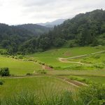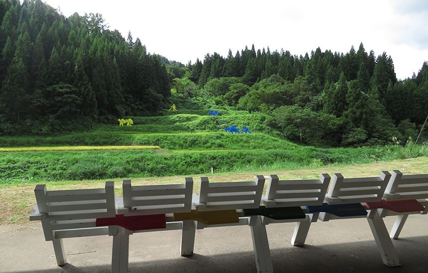 松代の棚田は、ほくほく線「まつだい駅」のすぐ近くにある棚田です。駅の裏側にある「雪国農耕文化センター」(農舞台という)内に拠点を置く「まつだい棚田バンク」が棚田保全や都市住民との交流活動を行っています。耕作できなくなった田んぼを都市部の個人オーナーや企業向けオーナー制度を活用しながら保全に取り組んでいます。また地域に住む女子サッカーチーム「FC越後妻有」の選手が新たな担い手となり保全活動をしています。農舞台は大地の芸術祭の拠点でもあり棚田の周辺にはアート作品が点在しています。農舞台内の「まつだい里山食堂」では地域の農産物を地域のお母さんが調理し好評です。2023年6月初開催された「越後まつだい春の陣トレイルラン」のスタート・ゴール地点となっています。