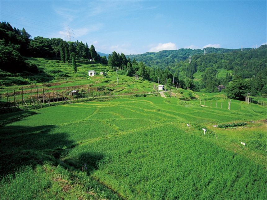 上越市の西側に連なる西頚城山地に位置し、桑取川水系の中ノ俣川を中心とした谷あいの集落で棚田を中心とした里山の暮らしが残る「中ノ俣集落」は史料で確認できるだけでも1300年以上の歴史ある集落です。自然の厳しさと向き合いながら、その恵みを最大限に生かす知恵と技術が今も受け継がれている地域です。上杉謙信の時代には春日山城の食料基地として、また道が交わる要衝として大変重要な場所でした。人々は古くから、冬の炭焼きに精を出し、深い雪が解け始めると、一斉に山や田んぼに出かけ狩猟採集や農業を行うという暮らしを続けてきました。耕作者の高齢化や過疎化による耕作放棄が進むなか集落の存続さえ危ぶまれています。