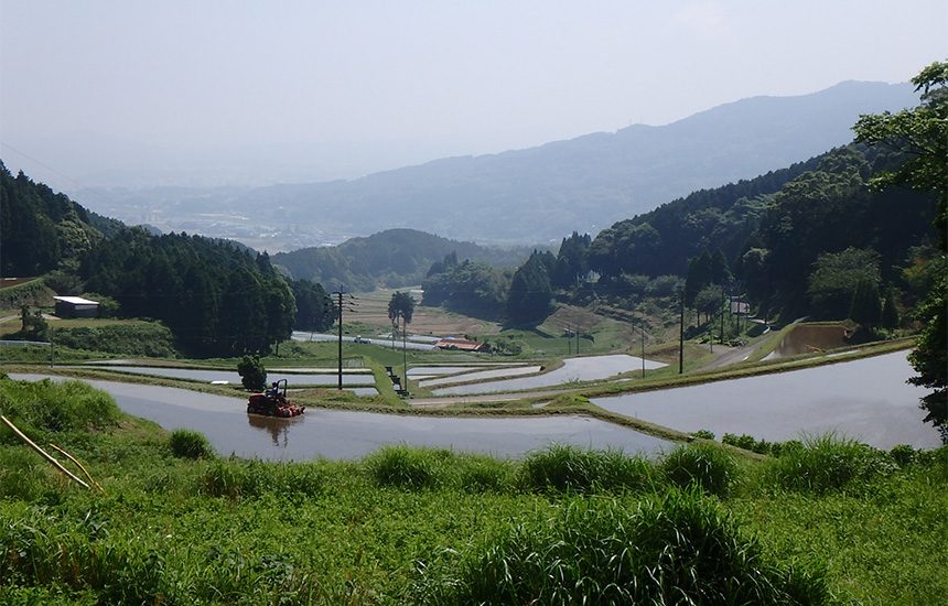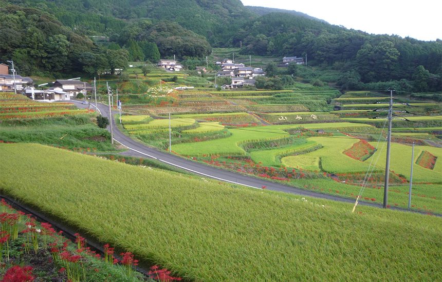 伊万里市は伊万里湾をいだく北部九州の拠点として知られています。中田棚田は、市の南部にあり、地区のボランティア団体「中田元気農業」や地元企業と連携しながら中田棚田の耕作放棄地の耕起や草刈りを行ったり、棚田への進入路の支障木の伐採やガードレールの掃除等を年間を通じて実施しています。農産物の付加価値を高めるため、棚田酒米を原料として地元酒蔵とのコラボ商品、純米酒「すみやま」が海外の日本酒品評会で金賞を受賞し、生産農家の「やる気」スイッチが入り、地元小学生や都市住民、企業ボランティア等による田植え、稲刈りなどの農業体験や食育活動など都市農村交流イベント等を行っています。このような活動から、令和元年のディスカバー農山漁村(むら)の宝にも選定されました。有田町「岳の棚田」も近くにあります。