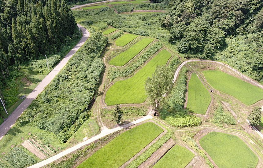 十日町市松之山地区に点在する9ヶ所(下布川、中尾、東川、上鰕池、下鰕池、五十平、赤倉、坪野、東山)の棚田で構成される「棚田群」です。その規模は全国つなぐ棚田遺産の中でも最大級の広さです。ブナ林で有名な美人林から東の方向に2㎞程離れた位置に北に向かって流れる東川があります。この東川に沿うがごとく9ヶ所の棚田が南北方向にほぼ直線状にが並んでいます。一つひとつの棚田は小規模ですが、冬水田んぼをはじめ豊かな自然環境に恵まれています。これらの棚田は、地域おこし協力隊やNPO松之山いきいき隊などによる里山ウォーキング・盆踊り・収穫を祝うコンサートなど数多くのイベントが企画され、県内外の高校生や大学生をはじめ多くの団体や民間企業と交流を重ねながら棚田の維持保全に取り組んでいます。【写真:十日町市提供】