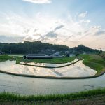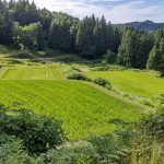 小佐渡の山々を背に国中平野、そして金北山を望む高台に穏やかな里山の風景が広がります。猿八に来ると、人里離れた山奥に来たような感覚になりますが、市街地から車で10分程の意外に近い場所にあります。棚田は圃場整備された方形の田んぼが整然と並んでいます。また棚田に面した一画には瀟洒な蔵書2万冊の演劇図書館「鳥越文庫」があります。経塚山(標高636m)からの澄んだ沢水を棚田(標高300m)に直接引き込んだ自然流水でお米つくりをしています。周辺を大自然に囲まれた環境の中で、丹精込めて育てられたお米は、安心・安全、そして味わい深い逸品です。