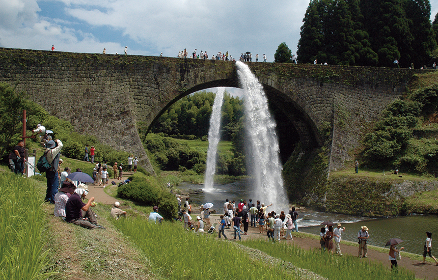 通潤橋の放水