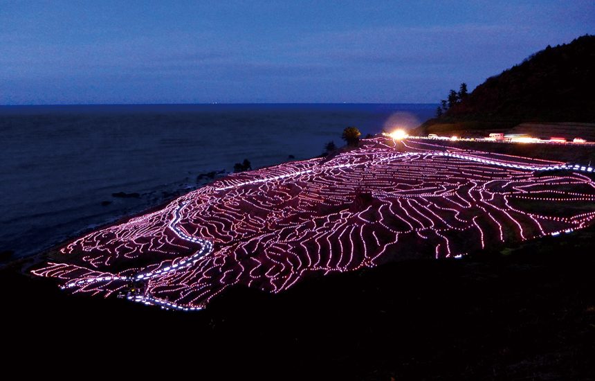 毎年10月中旬~翌年3月中旬:「あぜのきらめき」(2万5千個以上の太陽光発電LEDを設置し毎晩棚田を浮かび上がらせる、イルミネーションイベント)