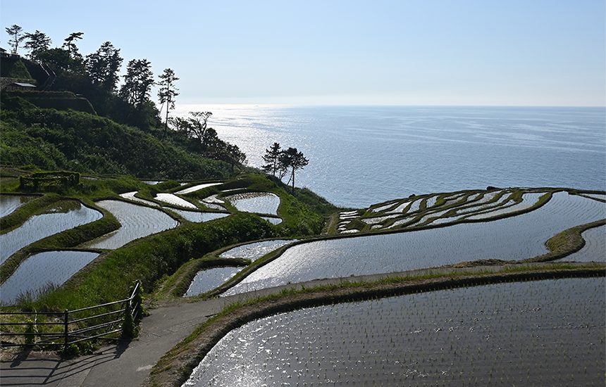 注【2024年1月発生の能登半島地震により、棚田や周辺道路に大きな被害が発生し全面復旧にはかなりの時間が必要です。2025年度の田んぼの耕作は、ごく一部分にかぎられており全体の光景は写真と大きく異なりなす。】