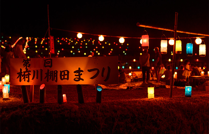 屋久島は鹿児島市から南に約130kmの位置にあり、世界自然遺産の島として知られています。椨川新田の棚田は屋久島の北東部に位置しており、1935年(昭和10年)から約2年間の歳月を経て、集落民の奉仕作業によって棚田として整備されました。1区画の面積は2a~4a、法面の高さは高いところで約2m、低いところで0.5mあり、すべて土羽で構成されています。近年では耕作者の減少等により休耕地も見受けられるようになっているため、「椨川地区農地資源・農村環境保全会」を中心として農地の保全が行われています。また、毎年8月末には棚田まつりが開催されおり、1000本近い灯篭の明かりで棚田が光の帯に彩られ幻想的な風景が浮かび上がります。