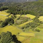 鶴岡市櫛引地域にあるたらのき代の棚田は庄内平野の南端に意図し、スキー場へ続く県道を上ると両手に棚田が広がっています。東に霊峰月山、西に朝日連峰が間近にあり、雄大な景色と棚田を同時に楽しむことができます。天候次第では、鳥海山を背景に美しい棚田と庄内平野を見渡すことができ、その眺望は別格です。この地域は果樹生産が盛んで、その品目数は県下有数を誇り、直売所や観光果樹園が充実しているフルーツ王国です。