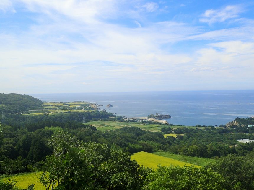 達者集落は佐渡屈指の海岸美を誇る尖閣湾が始まる位置にあり、県道上の海岸段丘上にある3カ所の棚田からは海を一望できます。また、森鴎外著「山椒太夫」でおなじみの「安寿と厨子王」ゆかりの里であり、母親と厨子王が「達者で逢えて良かった」と喜び合ったことからこの地名がついたともいわれています。
