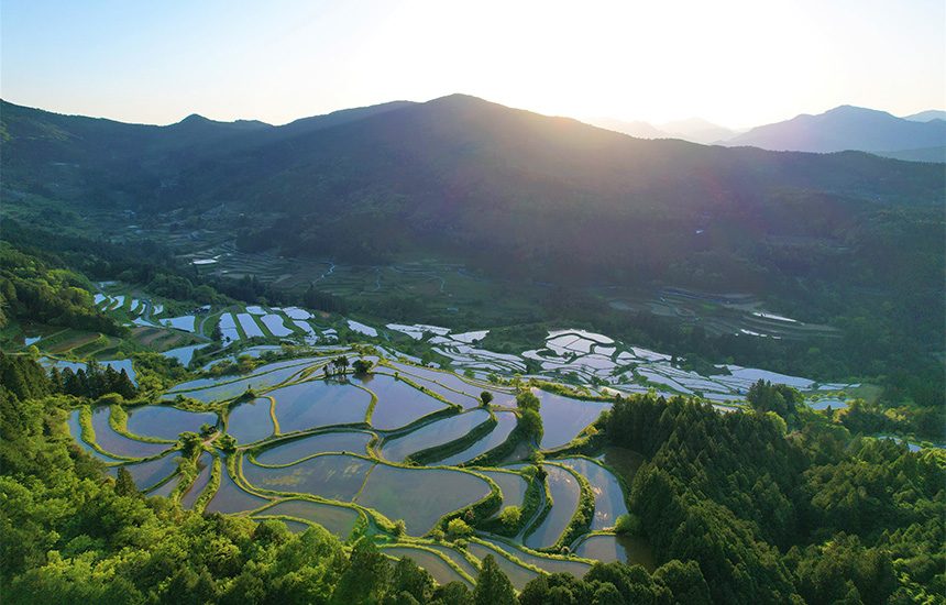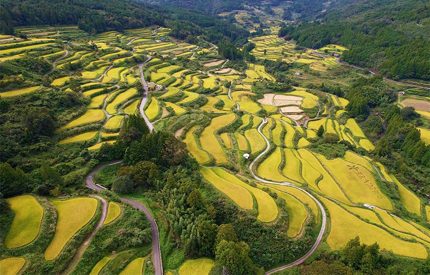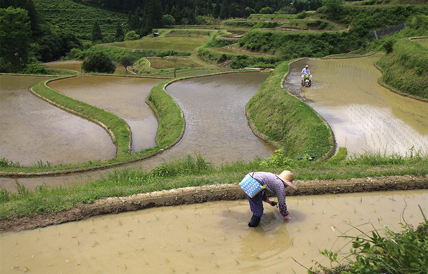 本山町は、高知県北部中央に位置し、北側に四国山地の険しい峰々が連なり、吉野川が地域のほぼ中央を流れ河岸段丘と扇状地が形成され四国のへそといえる場所にあります。土佐・本山天空の棚田群は、吉野川上流域に拓かれた2千枚以上の棚田が、美しい景観を形成しています。棚田で穫れたお米は、ブランド米「土佐天空の郷」としてお米コンテストINしずおか2010、2016において最高位にあたる特別最高金賞を受賞するなど高い評価を受け続けています。また、地域ごとに米の食味を判定する食味ランキング(日本穀物協会発表)では、品種「にこまる」が最高ランクの特Aを獲得するなど高い評価を受けています。棚田を核とした地域振興では、町内の小中9年間の総合的な学習で、棚田を活用した米づくりとブランド米である土佐天空の郷の魅力を体験を交えて学習し、棚田の重要性や魅力を伝えています。また、都市農村交流の一環として「棚田アート」、「棚田コンサート」を開催するなど、地域の人・もの・ことを「地域財」として発信することで、消費者や販売者が産地に訪れるきっかけを作り、人をつなぎ、未来へつなぐ棚田として新たな地域づくりに生かしています。