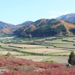 二本松市は、福島県中通りの北部に位置し、「智恵子抄」で詠われた安達太良山の山麓にあります。東和の布沢棚田は、安達ケ原にも近く、県道62号のバス停長沢あたりの脇道から沢沿いに1kmにわたり細長く続いています。布沢集落には、怪我をした天女が舞い降りたとの伝説が語り継がれていて、地元では「天女の舞う棚田の里」として、棚田の保全やビオトープの整備による生き物観察会、首都圏の芸術家による野良アートや企業、学生も参加する案山子祭り等の棚田の芸術祭など地域づくりに取り組んでいます。棚田の丘の農家民宿「遊雲の里」では農業体験も受け入れています。