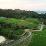 鳥取県と兵庫県の県境にある扇ノ山の中腹に拓かれた上地地区の棚田で上地棚田あるいは京ケ原棚田と呼ばれています。この棚田で特筆すべきことの一つは水源です。取水口は上地川の上流で、そこから棚田まで4㎞にも及ぶ長大水路で延々と導水されています。江戸時代末期に苦難の末に造られた手堀りの水路です。こうして開拓された棚田は最盛期には150枚ほど連なっていましたが、耕作者の高齢化等により休耕田が増えてきているのが現状です。一方では、鳥取大学や地元企業等のボランティアと行政が一体となった水路の管理や耕作支援が行われています。2022年には農水省の「つなぐ棚田遺産」に選定され、地域振興の核としての役割が期待されています。