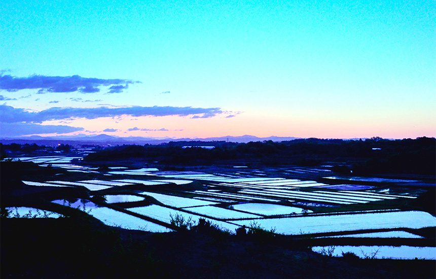 栗原市若柳上畑岡の県道36号(みやぎ県北高速幹線道路)の伊豆沼ICの北側には、緩やかな斜度の広大な棚田が連なっています。その一つが蓬田地区で「棚田カード」に登場する美しい田園風景そのものです。古くからの地形を活用し稲作が行われています。地域の人々により保全され、四季折々の優美な景観を創り出しています。この美しい風景を発信する取組として、令和2年度から若柳蓬田集落協定主催による「よもぎだフォトコンテスト」(会場:JRくりこま⾼原駅内オアシスセンター)を開催しています。棚田米のほか遊休農地を活用し、ソバ、サツマイモ、エダマメ等を栽培し、収穫体験や収穫祭でのお振舞を行っています。
